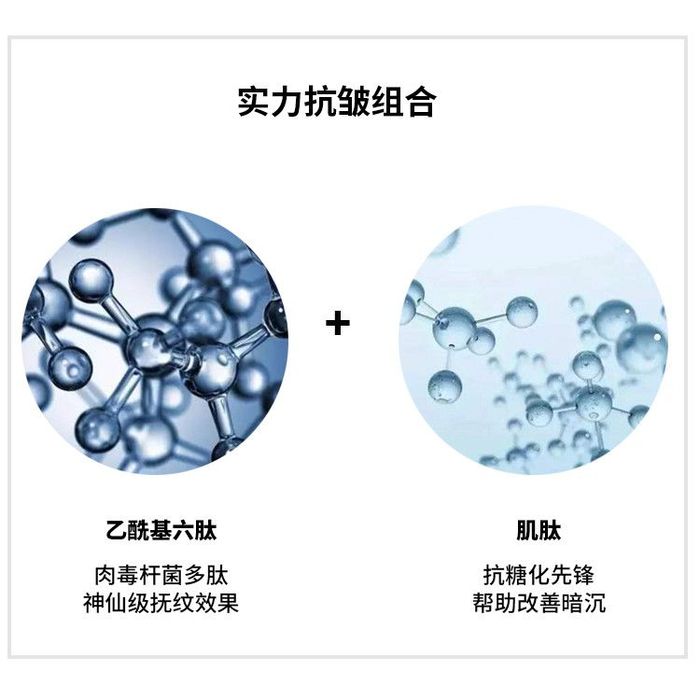 ● 多效面霜:含有功效型修复成分,像经典的抗皱成分肉毒杆菌多肽(乙酰基六肽),进入细胞后可以阻断细纹的产生,从源头上减缓衰老!