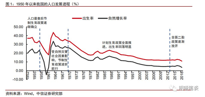 近日,有传言称2019年的新出生人口预计1100万人,较2018年的1523万人大幅回落,而结合出生率看,2018年我国的出生率录得1.09%,是1970年以来的最低水平,新出生人口的腰斩与出生率的低迷似乎都说明当前我国的人口增长已有一定的下行压力。接下来本文将对我国的人口发展历史与现状进行梳理,试图讨论当前低生育率对我国经济基本面与资本市场的影响,并结合海外经验来简单分析如何应对当前低生育率的局面。