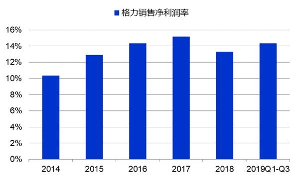 ▼ 格力销售净利润率