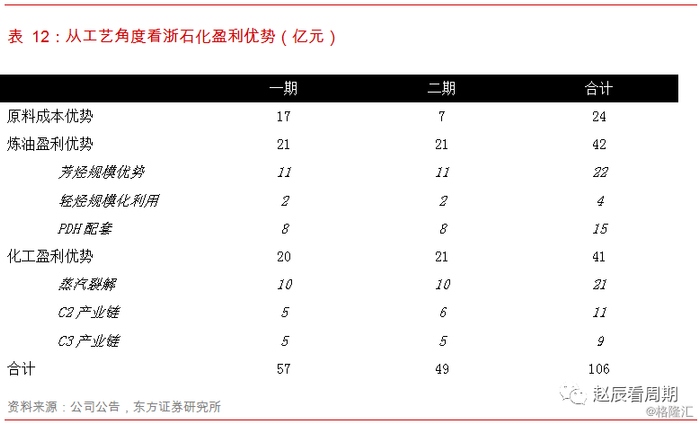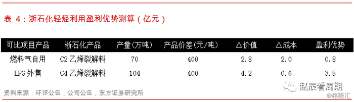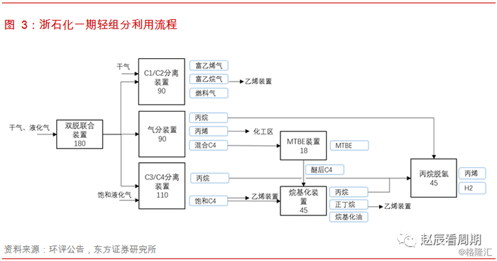受益于规模优势,浙石化项目C3/C4副产品产量大,可实现较为经济的深度加工,通过气体分馏、C3/C4分离和烷基化装置,两期炼油可提供百万吨的丙烷资源。因此除石脑油蒸汽裂解外,浙石化项目的一大特色就是两期均配套了丙烷脱氢PDH装置,是国内首个将大油头和小气头完美结合的典范,相应盈利优势约15亿。具体有以下两点: