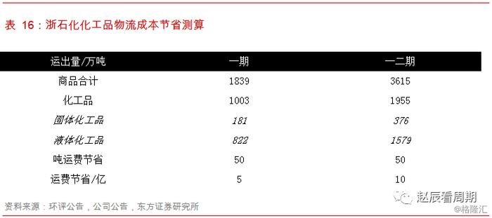 浙石化所在宁波-舟山港是全球吞吐量第一大港,背靠广阔的长江经济带,也是我国对外贸易的桥头堡,享有通江达海,得天独厚的物流优势。舟山水文条件优越,天然良港众多,有多个30万吨级以上原油码头可供浙石化使用,未来随着自贸区三基地一中心项目推进,油品储运和贸易所需配套基础设施也将逐步完善。成品油销售端浙石化已携手浙能集团成立了销售公司浙江石油,依托浙能旗下加油站进行汽柴油销售。浙石化产品结构少柴油多芳烃,两期柴油产量仅332万吨,明年受IMO新规影响,柴油消费有望回暖,我们预计销售压力不会很大。汽油方面长三角经济带是国内汽油消费量最高的地区之一,浙江省年汽油供给缺口约500万吨,每年还需要从外省调配,未来仍有一定市场容量。化工品方面,华东地区是我国最大的化工下游消费市场,以主要产品PX为例,下游PTA约50%的产能都分布于江浙两地,销售运输极为方便,C2~C4产业链各产品也基本可以就近消化。浙石化两期合计化工品运出量约1955万吨,其中除PE/PP/PC外,液体化工品约1600万吨,长途运输运费很高,如假设浙石化吨运费节省50元,则合计物流费用节省约10亿,其中一期约5亿。