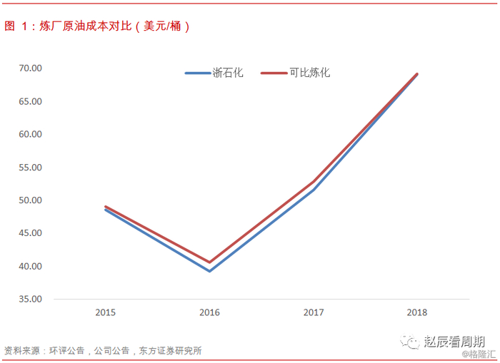 综合来看,我们认为浙石化油种适应性极强,可根据实际市场情况决定轻重原油的采购比例。回溯历史数据,浙石化原油采购成本较行业平均低1.2美元/桶,两期4000万吨炼化规模对应原料成本优势约24亿。