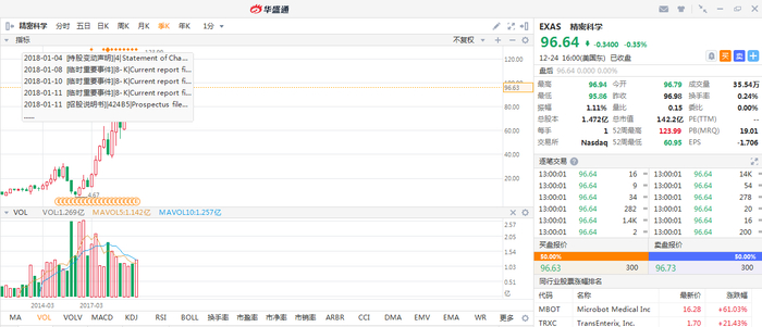 涨幅排名第五名是一家主营DNA测试的公司精密科学,累计涨幅超过了28倍。精密科学的CEO在公司的三季度电话会议上曾经表示,在过去五年有超过300万人接受过Cologuard的筛查,也就是对于结直肠癌的筛查。