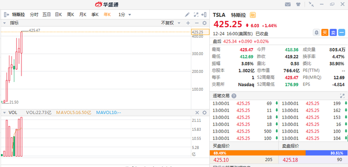 截止12月24日美股收市,标普500全年涨幅高达28.58%,道琼斯工业指数大涨22.24%,纳斯达克综合指数更是大涨34.93%。根据统计,本轮美股牛市持续时间已经是历史第一。