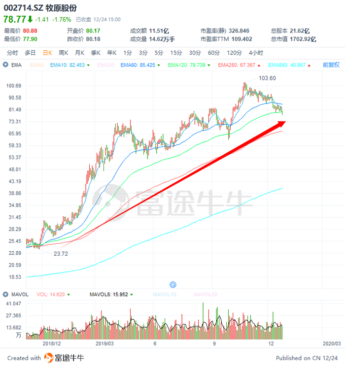 和猪价一起上涨的是养殖股的K线图,龙头牧原股份全年上涨174%,牧原董事长秦英林今年的净资产因此增长了4倍,达到86亿美元,成为彭博全球亿万富翁指数中增长最快的富豪。
