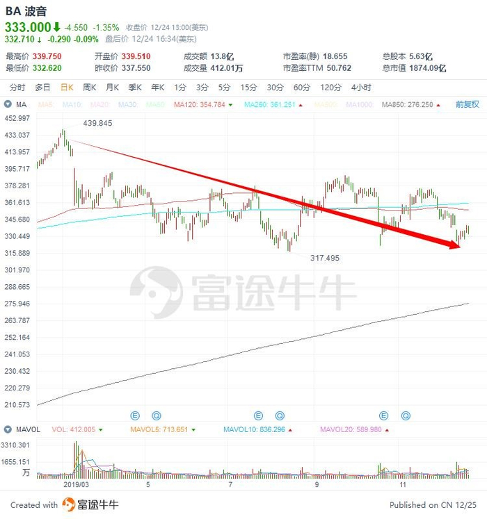 目前事件有了最新的进展,12月23日晚,波音公司在美股盘前暂停交易,并发布公告称,CEO丹尼斯·米伦伯格(DennisA.Muilenburg)宣布辞职,复牌后,波音股价直线幅拉升,收涨2.91%,报337.55美元。从股价表现来看,波音的此次人事重组让市场增加了信心。