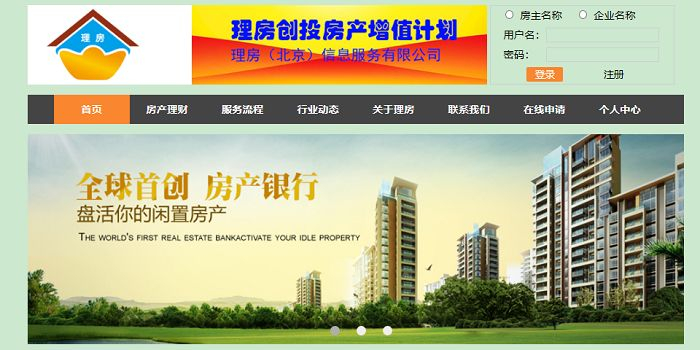 理房网自称是一家全球首创的“房产银行”,面向全国推广一项“房产理财计划”,宣称不用投入现金,就能每月获得一份稳定的收益,“让房子来替你赚钱”,而且不影响房子的使用和出租。