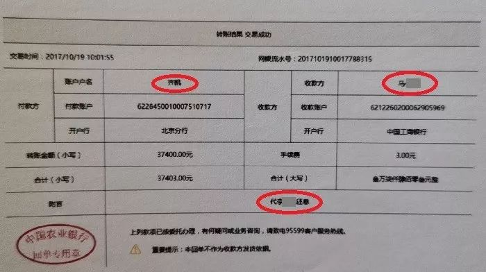 (齐凯通过个人账户直接向放贷公司打款 受害业主提供)