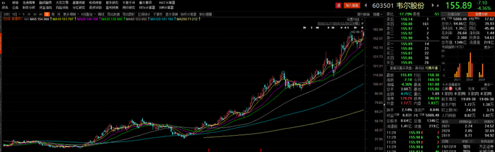 韦尔股份12月25日市值已突破1400亿元,年内涨幅达到456.44%,排名涨幅榜第三。