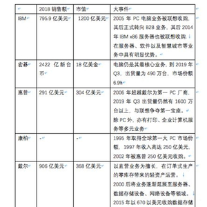 联想以销售PC电脑起家,在创业之初,其主要对手有IBM、联想、宏碁、惠普、戴尔,康柏等,彼时在微软的冲击之下,行业实现了电脑软硬件的分离,降低了“攒机“成本,这也成为当年行业兴起的一大重要因素,从此时开始,电脑业由早期的技术驱动,转为劳动密集型行业。