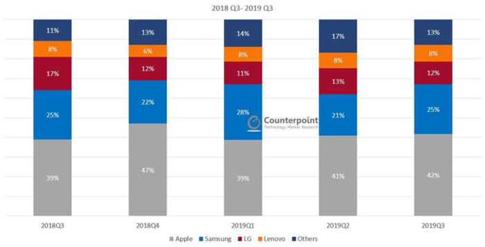 截至到目前为止,摩托罗拉手机的主要市场仍然集中在美洲市场,且多是与当地运营商合作,根据Counterpoint数据,联想在美国手机线下市场共有8%的市场份额,在苹果、三星和LG之后。