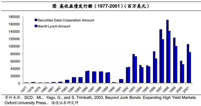 然而1991年的高收益债券市场迅速抛下了80年代末糟糕的境遇,新发数额比1990年增加了近10倍,自此开启了高收益债市场新的发展阶段。