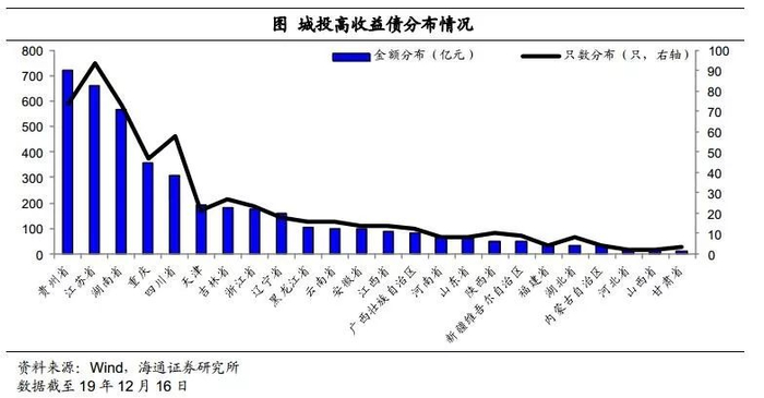 湖南、重庆、四川、天津、吉林省也有较多高收益债,像四川的绵阳、贵州的毕节、湖南的湘潭和株洲进入我们城投高收益债样本的都有5只及以上。