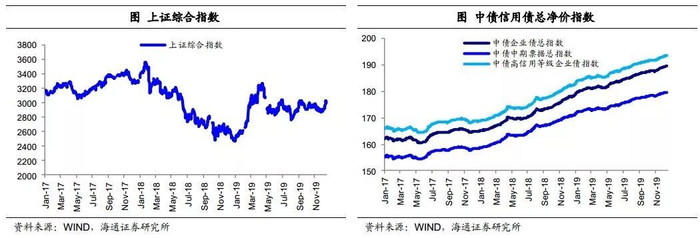 中债-爱建高收益债指数和债市指数在趋势上更为密切,偶有背离,比如18年4-6月和19年4-6月高收益债指数的下挫,主要与当时信用风险频发有关。整体与股市指数相关性相对还比较弱。