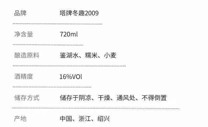 这款 2009 年份冬趣,配料表中只有酿酒必需的鉴湖水、糯米与小麦,并不添加普通黄酒中常见的焦糖色。