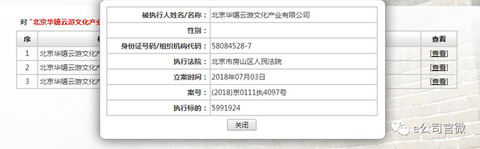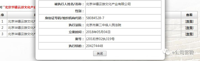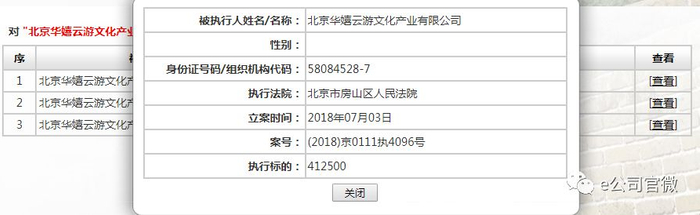 进一步检索发现,(2018)京02执319号涉及的被执行人还包括蓝鼎实业、宇驰瑞德、何欣、辛维雅、北京华嬉云游文化产业有限公司(下称“华嬉云游”)、北京市神州百戏文化产业有限公司(下称“神州百戏”);(2018)京02执353号涉及的被执行人也包括宇驰瑞德。
