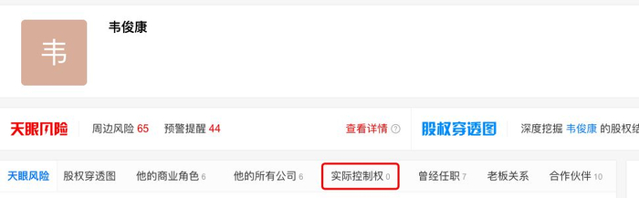 而在韦氏家族的资产版图中,韦振宇的父亲韦俊康却鲜少露面。根据公司2018年9月披露的《关于对外担保及资金占用的进展公告》可以看到,在上市公司关联方认定中,有10家公司是韦俊康控制的,但在天眼查等信息查询网站中,韦俊康却不曾持有任何一家韦氏家族旗下公司的股份。