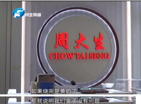 为了打消周女士的疑虑,周大生工作人员解释,可以用火烧一下,如果烧完金子恢复了颜色,就说明镯子没有问题。