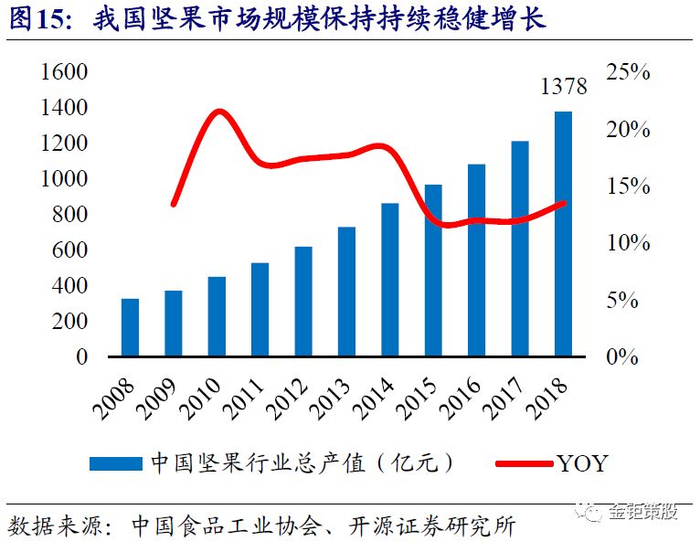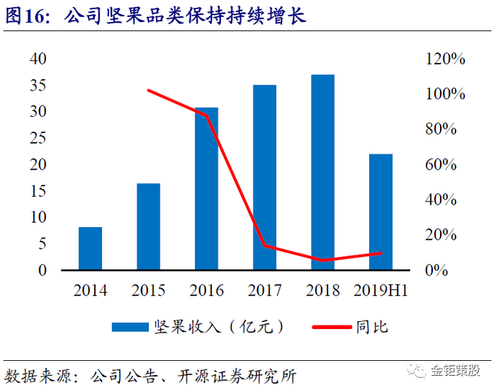 1.1、 紧抓坚果品类发展机遇,借力电商渠道快速崛起