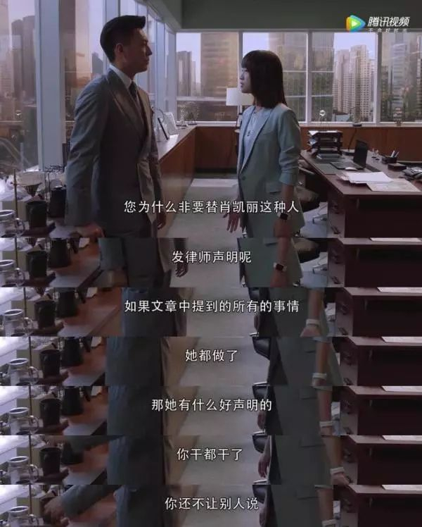 当然,《精英律师》在专业度方面也远非一无是处。律师朋友表示,跟以往一些错漏百出的律政剧相比,《精英律师》整体还是规范的,甚至还触及到一些新型法律问题,比如“影射型侵权言论”。
