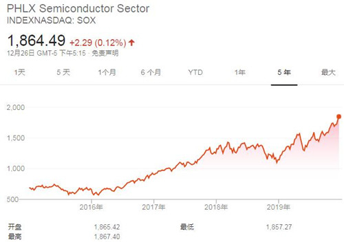 费城半导体指数周四上涨2.29点,或0.12%,报1864.49点。