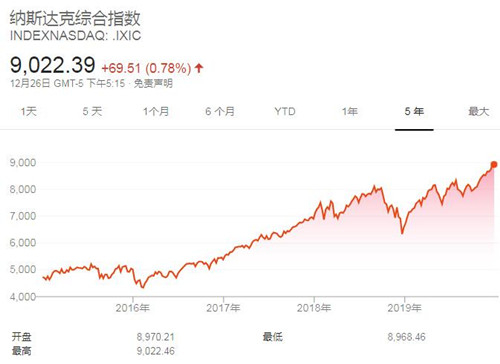 【TechWeb】12月27日消息,据国外媒体报道,受贸易方面乐观情绪和亚马逊股价上涨提振,美股三大股指再创收盘新高,纳斯达克指数(纳斯达克综合指数)首次突破9000点。