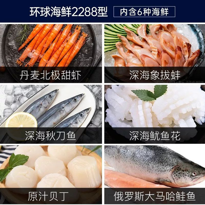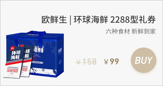 今天推荐的这款2288型海鲜礼券,内含俄罗斯大马哈鲑鱼、丹麦北极甜虾、深海象拔蚌等6种海鲜产品,非常经济实惠,适合一家三口来一顿美美的海鲜餐。