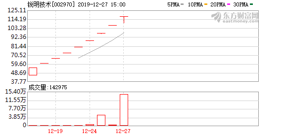 12月17日,锐明技术(002970.SZ)在深圳证券交易所中小板挂牌上市,截至12月26日,股价在首日顶格涨幅的基础上,走出连续7个涨停,反映了市场对公司未来业绩的乐观预期。