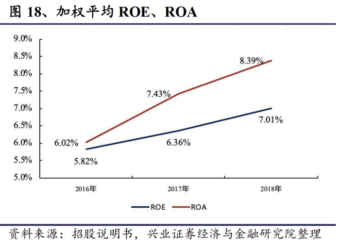 公司加权平均ROE、ROA稳步增长。2016-2018年,公司扣非后加权平均净资产收益率分别为5.82%、6.34%、7.01%,总资产报酬率分别为6.02%、7.43%、8.39%,呈稳步增长态势。