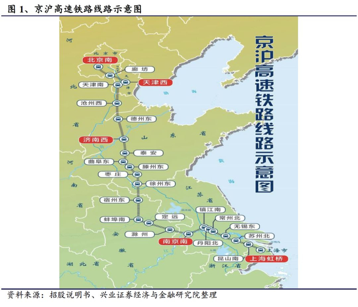 京沪高铁是中国铁路的最核心资产,连接北京、上海两大最核心城市,纵贯河北、山东、安徽、江苏四个经济、人口大省,全线长1318千米。此外拥有24个车站,其中有北京南站、天津西站、济南西站、南京南站及上海虹桥站是全国重要交通枢纽站。京沪高铁的沿线地区是运输最繁忙、运量增长最迅猛的交通走廊,是当之无愧的“黄金铁路”。