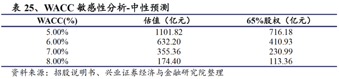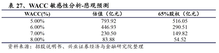 在中性预测的情况下,假设资金成本为5%、6%、7%、8%,估值分别为1102亿元、632亿元、355亿元、174亿元。对应京沪高铁购买的京福安徽公司65%的股权估值为分别为716亿元、410亿元、231亿元、113亿元。