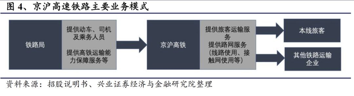 主要业务模式为本线列车提供旅客运输服务,并向跨线列车提供路网服务。根据京沪高铁公司与北京局集团、济南局集团、上海局集团签署的相关协议,京沪高铁本线上开行的动车组列车由京沪高铁公司担当,并取得担当收入;京沪高铁跨线开行的动车组列车由其他铁路运输企业担当,铁路局取得担当收入、京沪高铁获得路网服务收入。