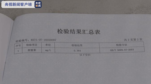 北京来今雨轩公司代理律师王丽丽:下面的经销商,我们因为是代理商嘛,代理的酒鬼酒的产品,然后向我们这边反映是说检测出来有甜蜜素,人家投诉说不能上市销售了。我们这边就很错愕,就是一个上市公司怎么可能会添加这个东西,我们就拿了抽样,从库里抽样去国家质量产品的一个监测中心,还有上海的一个国锦监测中心去做了一个检测,一检还真检出来有甜蜜素。