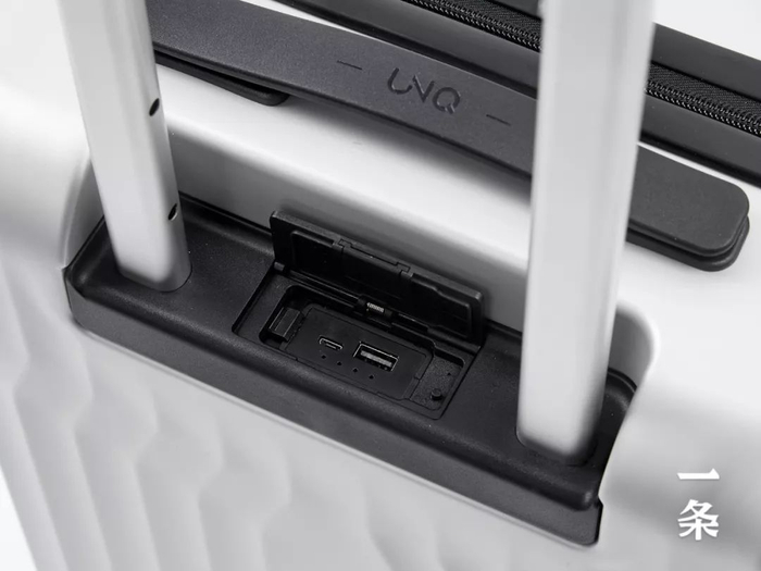 为了解决这个麻烦问题,我们找到了一款智能行李箱,来自品牌“UNQ”。
