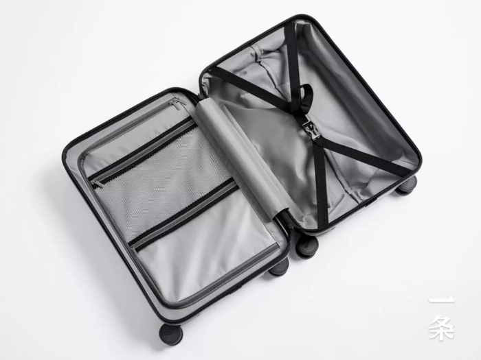 而且也挺能装,打开箱子就能看到拉链收纳袋,内部空间分隔得井井有条。