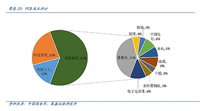而对于处于下游的PCB制造来看,覆铜板占据了PCB的25%,而铜球,铜箔则共同又占据了7%,即所有含铜用品至少占据了PCB生产成本的30%以上。铜价上涨带动的铜箔、覆铜板也将间接传导至PCB端,我们认为在后期PCB也将迎来和CCL一样的涨价趋势。