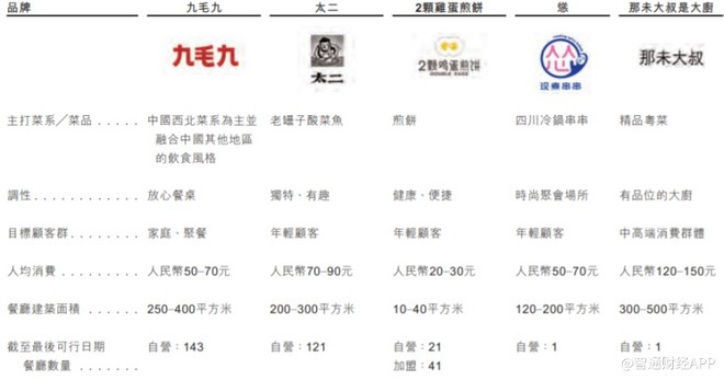 虽说太二代表了九毛九未来估值的上限,但九毛九不仅仅只有太二。除太二品牌以外,九毛九公司旗下还有经典的九毛九面馆、2017年成立的2颗鸡蛋煎饼餐厅以及2019年成立的怂和那未大叔是大厨。