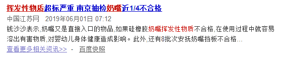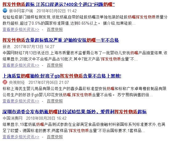 其中,奶嘴中的挥发性物质超标频繁出现在各地市质监部门抽检结果中,让许多家长忧心不已。