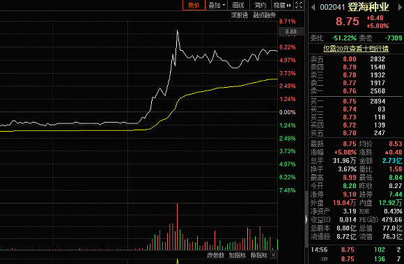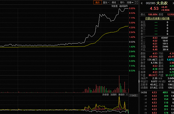 盘面上来看,受消息刺激,大北农尾盘封死涨停,概念股登海种业大涨5%。