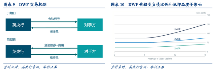 2008年10月,英央行推出操作性常备便利(Operational Standing Facilities,OSF)和贴现窗口便利(Discount Window Facility,DWF),取代此前的常备便利。OSF的主要目的是将市场利率限制在利率走廊以内,同时为隔夜摩擦性支付冲击提供流动性保险,防止隔夜利率大幅波动;DWF允许参与者以低流动性资产作为抵押,从英央行借出高流动性金融资产,与SLS相比,DWF旨在应对短期流动性冲击,期限不超过30天。