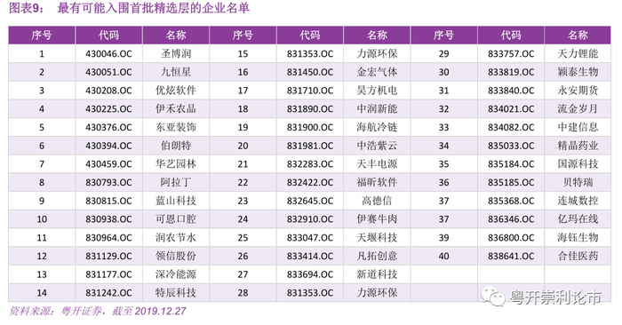 最后可能入围首批精选层的企业名单。数据来源:粤开证券