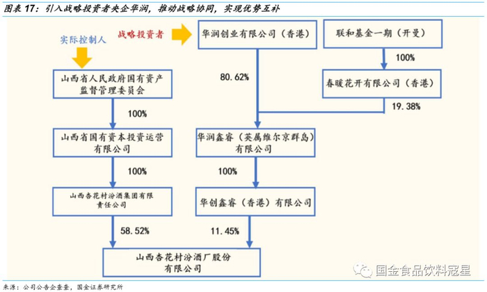 2018年初公司混改取得关键性突破,引入战略投资者华润。华润成为山西汾酒第二大股东,双方签订战略合作协议,共同成立管理提升组和营销协同组。公司选派骨干员工赴华润大学进行交流学习,借鉴华润在消费领域的经营经验,构建汾酒与华润融通发展的酒类产业新生态,同时在产品推广、渠道和品牌运作等方面加强交流合作。