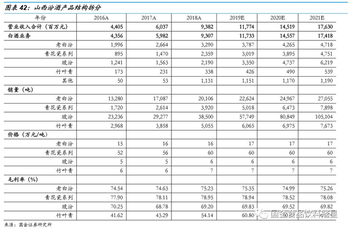 清理非核心产品,实现产品线瘦身。在2018年股东大会上,公司已明确表明将收回“汾牌”,由开发模式全面转换为定制模式及自营销售;除此之外,还将收回所有带有“汾”字的产品,尽快完成品牌梳理,实现品牌瘦身。2019年初,汾酒集团品牌管理工作计划明确,8月底前完成产品线瘦身,对非核心产品进行清理。预计汾酒集团整体上市完成后,部分“开发酒”将彻底退出历史舞台。