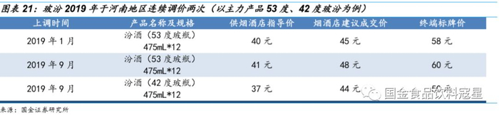 于河南地区连涨两次,占位终端50-60价格带。山西杏花村汾酒销售有限公司在近日下发的《关于调整玻汾系列产品价格体系的通知》的主要内容显示:9月1日和11月1日,分两次对河南省区的53°玻汾(475mL*12瓶)、42°玻瓶汾酒(475mL*12瓶)等不同规格、不同度数、不同包装的9款产品进行价格调整。此次价格调整囊括了整个渠道环节,包括开票价、供烟酒店指导价、烟酒店建议成交价和终端标牌价的调整。值得注意的是,今年1月,玻汾已经对53°玻汾(475mL*12瓶)的价格进行了上调,这已经是今年第二次价格调整。