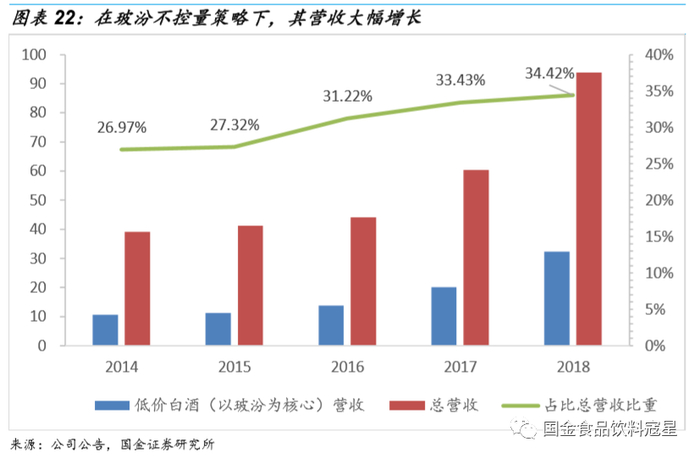 优势二:品牌效应。汾酒自身的品牌效应也能够给玻汾的销售带来增益:随着青花汾酒不断深耕渠道,控量挺价逐步站稳次高端,其所形成的品牌效应能够同时带动低端市场玻汾的销售。