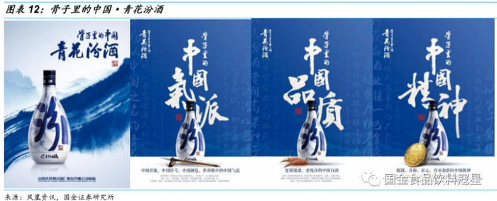 强化突出“骨子里的中国·青花汾酒”高端民族品牌形象。2017年以来,汾酒的品牌打造从以我为主转变为消费者为中心,着力将汾酒的品牌价值向消费者传递。公司重点围绕“品质、文化、历史”核心优势,强化突出“骨子里的中国·青花汾酒”高端产品品牌形象,充分发挥了青花汾酒作为民族匠心品牌的高站位,强化了汾酒作为民族品牌的形象认知。“骨子里的中国”,承载了汾酒传承千年文化而生生不息的精神,体现了融汇中国文化精髓、匠心酝酿的中国味道。