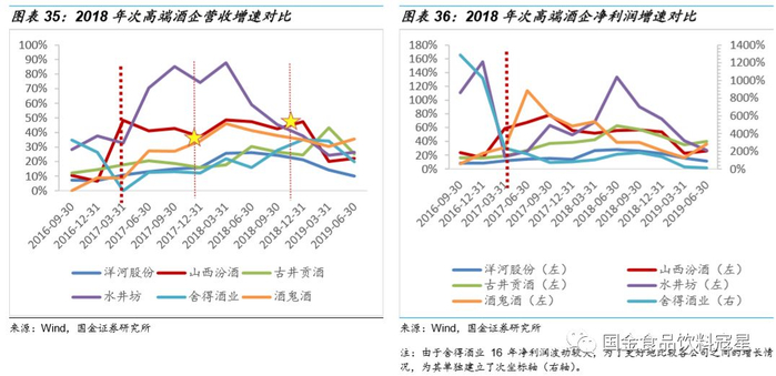 (3)省内消费升级,省外扩容发展:近年山西省经济增速赶超趋势明显,消费升级带来居民消费潜力不断释放。同时随着汾酒省外市场规模性拓展和渠道下沉力度的加大,省外营收大幅增长,18年省外营收增速首超省内,省外需求呈现扩容式增长态势。19年公司主动放慢增长速度,出台“三月六条”整顿市场,更是明确规定“2019年一季度末任务进度不得超过公司规定上限”,将“高质量”的重要性放在“高速度”之前,使得汾酒能够在发展的过程中不断调整,让市场的高速增长更加具有持续性。面对整个行业的挤压式竞争状态,加强品牌力和渠道建设成为了公司的主要努力方向。