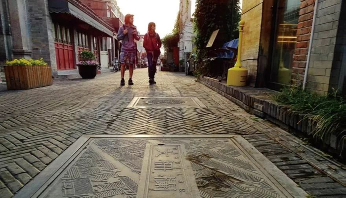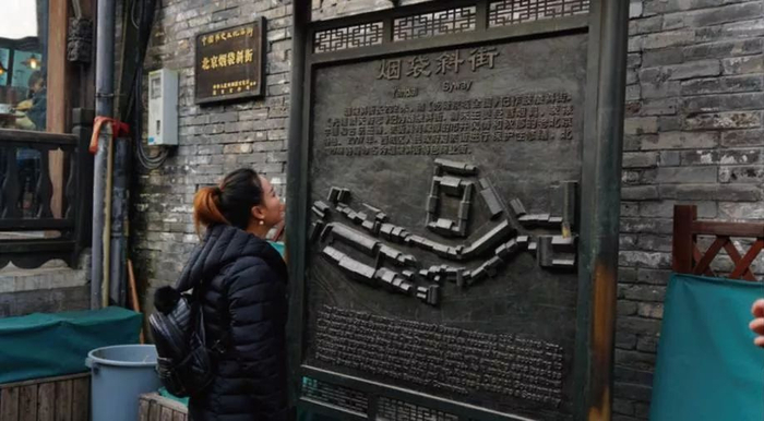 烟袋斜街。以地面铺装、墙面标识引导文化探访 。