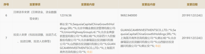 新京报记者自工商资料获悉,山西潞宝集团焦化有限公司(下称“潞宝集团”)于12月24日发生投资人变更,原股东北京华隅金鼎投资管理有限公司、UnionHighwayGroupLrd.、北京金典银桥贸易有限公司与光彩四十九控股股份有限公司退出。