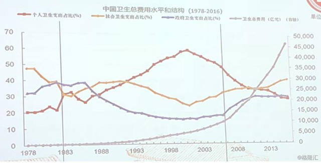这里需要介绍一下我国的医疗体系沿革。80年代以前,我国实行免费医疗体系,国家自己运营所有医疗机构,国家财政支出所有医疗费用;同时以赤脚医生为抓手实行分级诊疗(铺到乡村一级),总体来说取得了辉煌成功。1980年在同等人均GDP国家中,中国的人均寿命比同层次国家高26%。